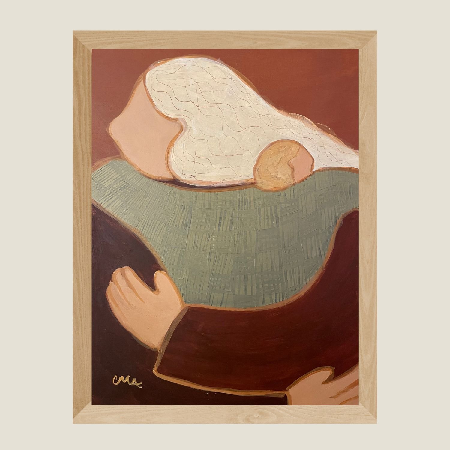 Painting of a grandmother hugging her grand baby. Depicting the deep love, peace, and safety that a grandmother brings. I hope to share with the world, how I see a mothers love, something that lasts forever. A perfect gift for mother's day