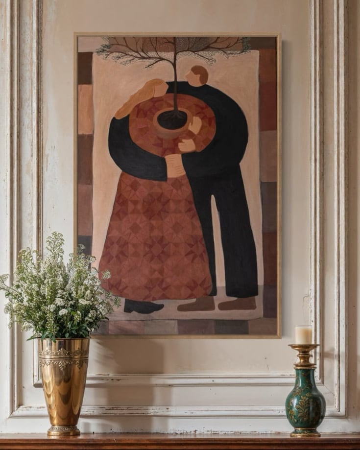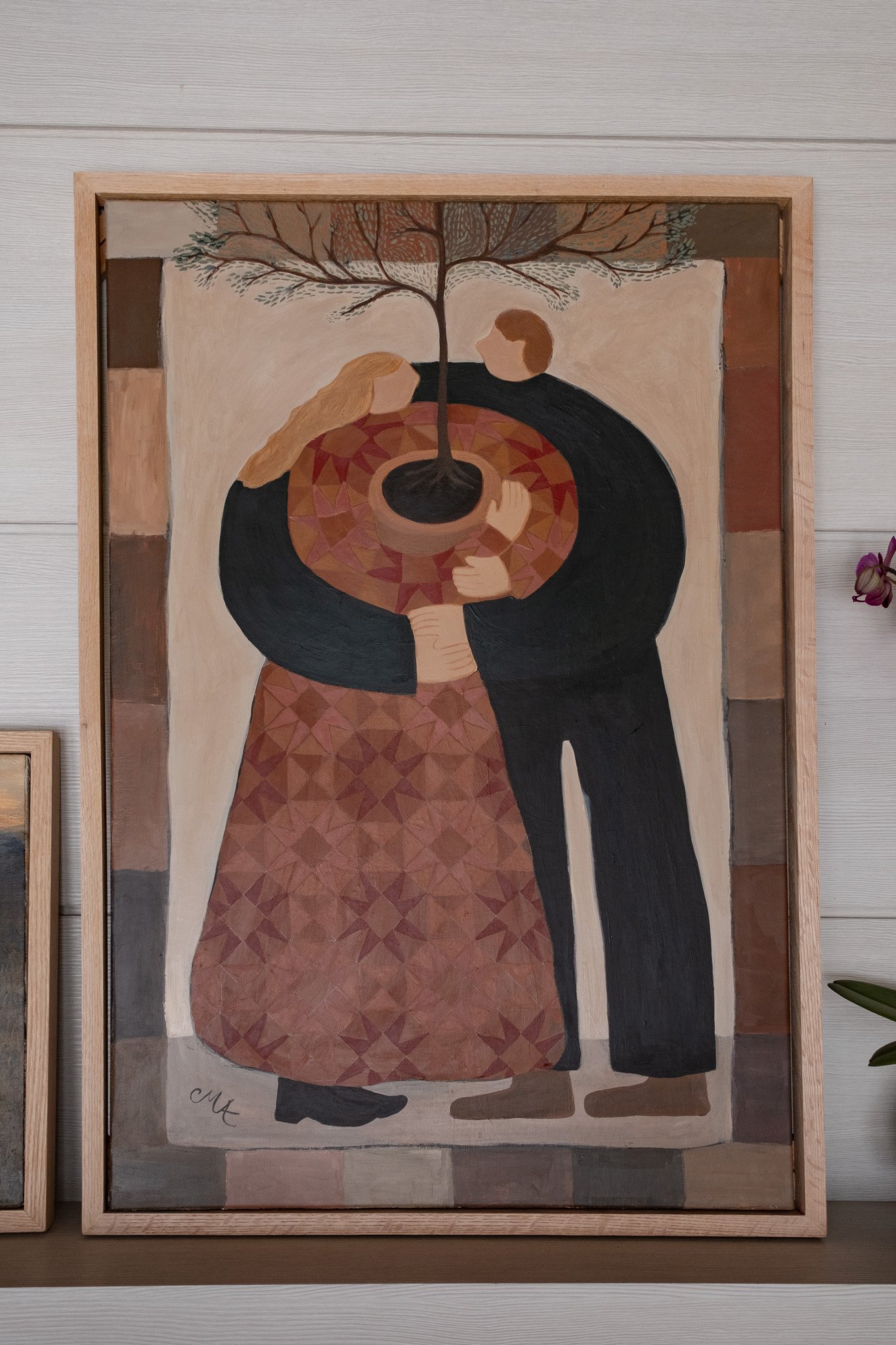 Original painting of a couple with a dream. This piece is inspired by the wild ambition a women embodies and her partner lovingly supporting her. The aspirations of a women are not to be questioned, but to be celebrated and supported in love. My goal as an artist is to share with the world, how I see love. This to me is a partnership full of trust and hope in living in our higher selves.